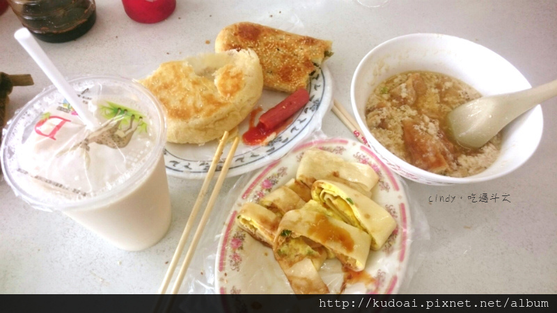 內容物有甜鹹豆漿、甜燒餅、蔥燒餅、蛋餅、熱狗