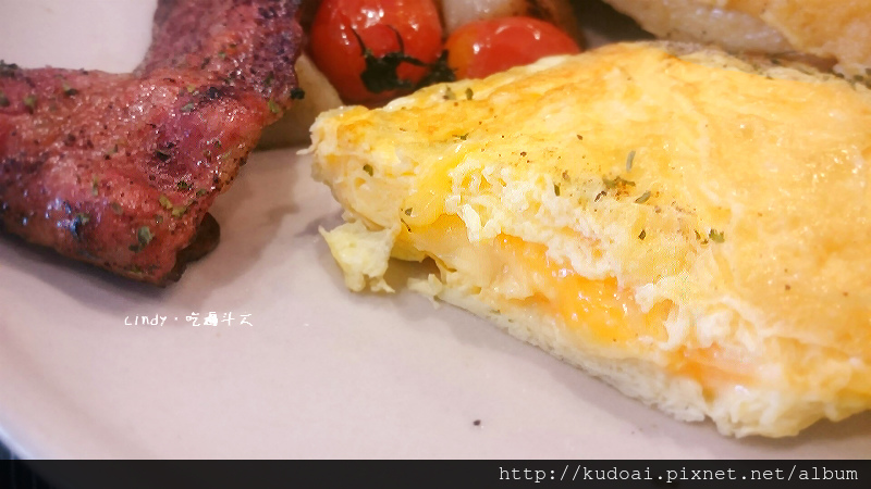 最推薦的是這個起司歐姆蛋,超厚工的煎蛋捲裡面有令人垂涎的溶化起司,